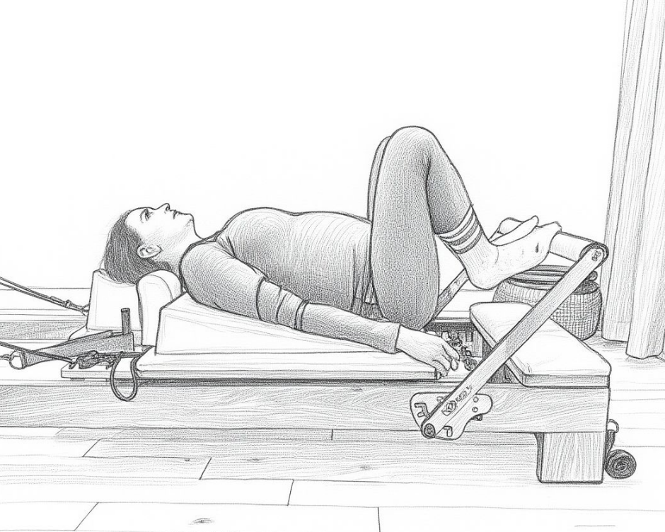 Supine positioning should be phased out or closely monitored from around 16 weeks, replaced with semi-reclined positioning at an incline of at least 30 to 45 degrees, or side-lying, seated, and standing variations. On the Reformer, this is easily accommodated by adjusting the foot bar and using the headrest or bolsters to support a semi-reclined position. The carriage provides excellent support for side-lying work, which becomes increasingly valuable as the pregnancy progresses.